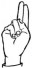 На ћирилици написано ПАУН МАЛИЋАНИН састоји се из 13 слова [?]. Исписано ћириличном једноручном азбуком за глувонеме: